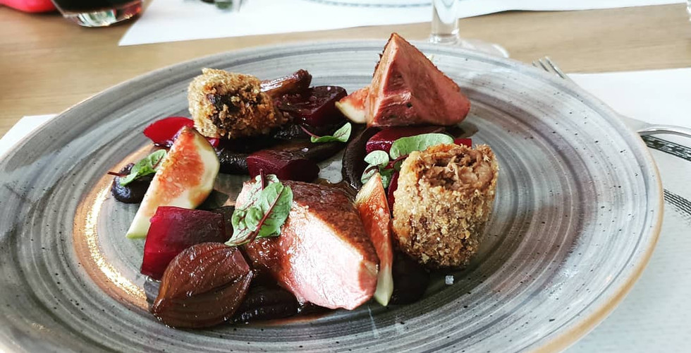 Pedimos: crema de hongos, sopas varias, carne con boletus y pato con higos regado con cerveza Leffe. Una delicia todo.
