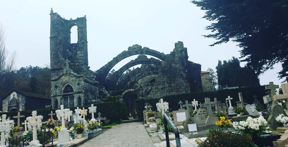 Dividimos la visita en dos partes: por un lado, el lado norte, donde fuimos a las ruinas de Santa María, actualmente usada como cementerio y encuadrada dentro de los monumentos funerarios de España, y de verdad que tiene su mística, creas o no creas en lo que sea, tanto el cementerio como el monte en el que se sitúa trasmiten algo que no sabría bien cómo catalogar, es esa sensación de que si detrás de un árbol te aparece un duende o un espíritu... tampoco te va a resultar raro.